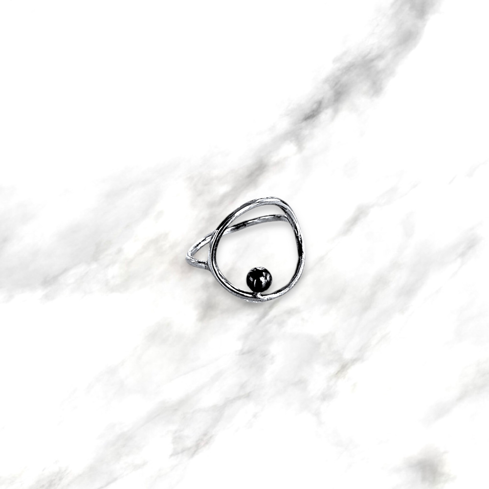 Anello traforato realizzato dai nostri orafi in argento 925 con perla nera coltivata