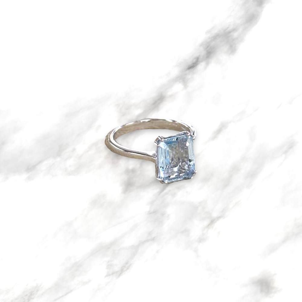 Solitario in oro bianco 18kt con acqua marina naturale taglio smeraldo