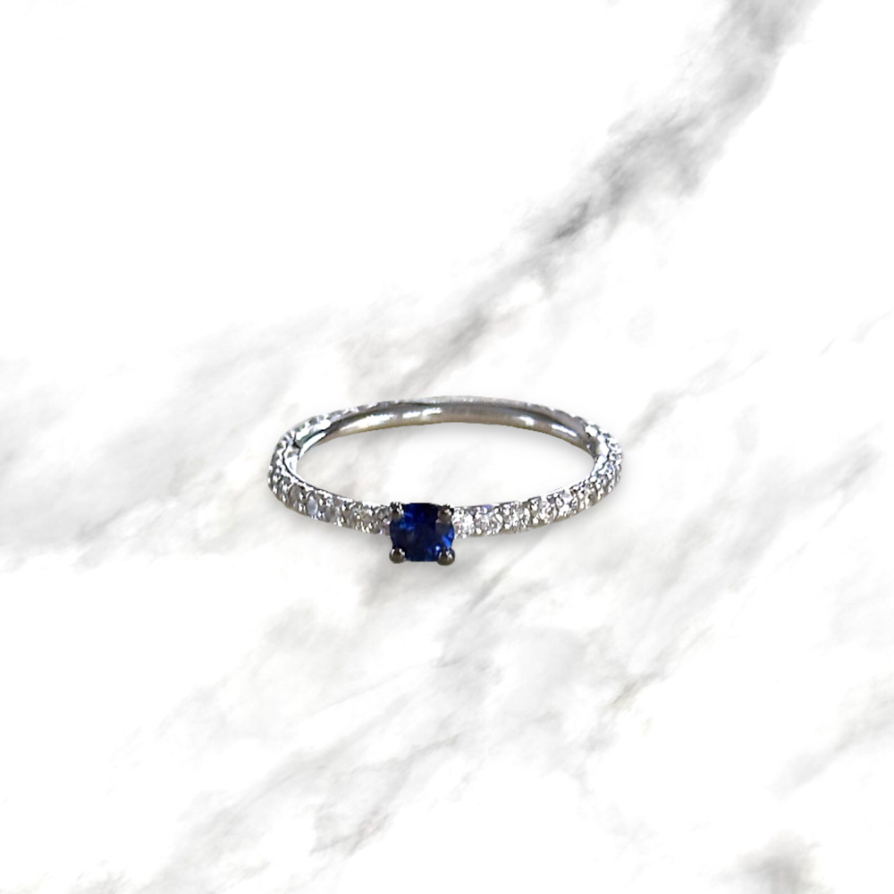 Anello in oro bianco 18kt con diamanti taglio brillante e zaffiro blu naturale