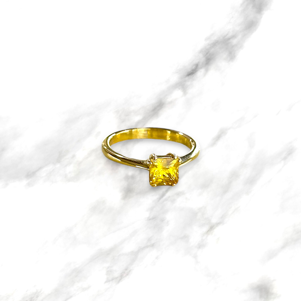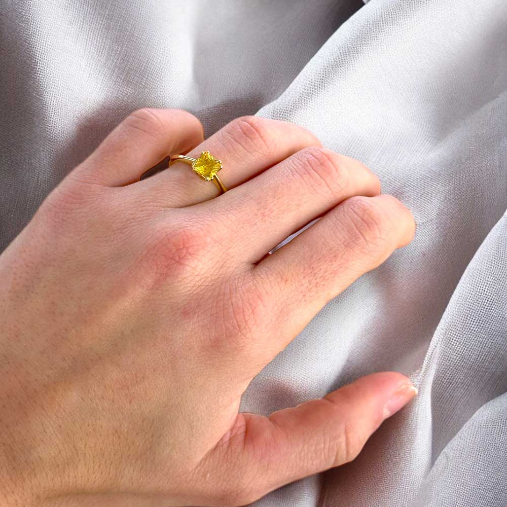 Solitario in oro giallo 18kt con zaffiro giallo naturale taglio cuscino