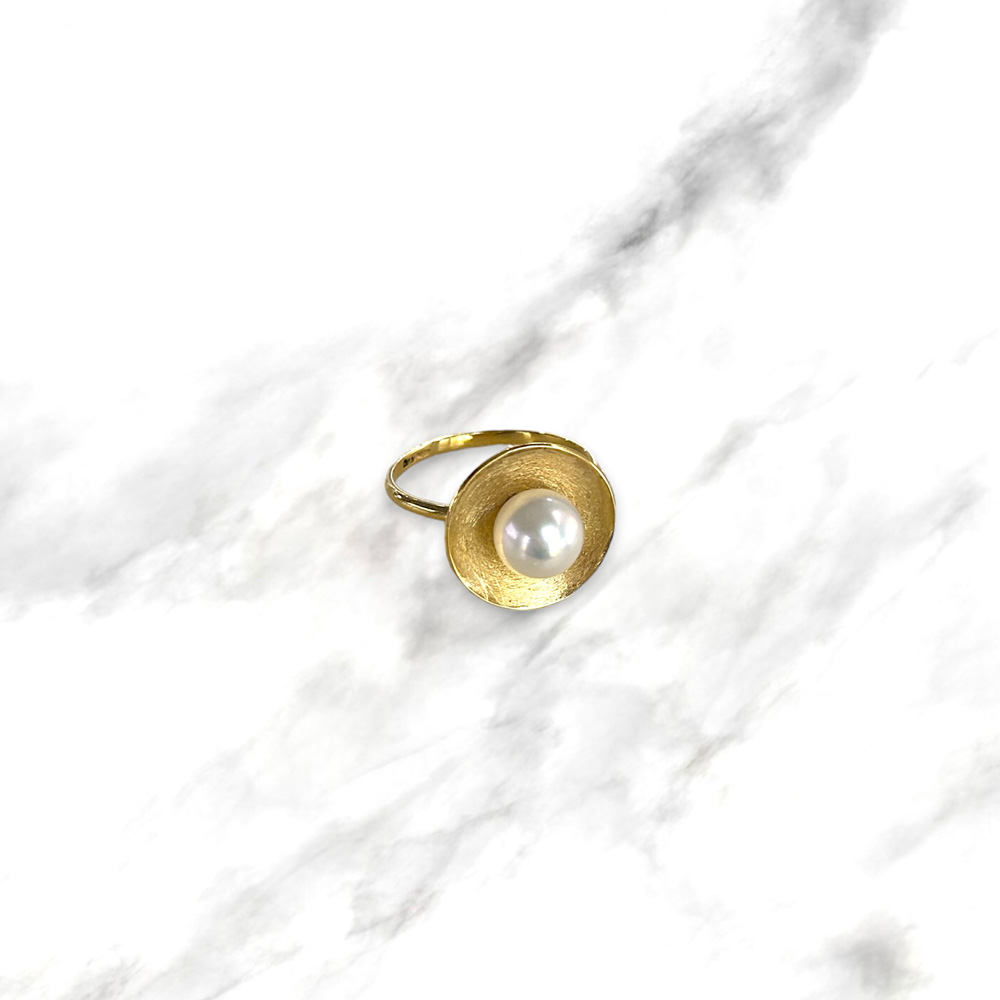Anello realizzato dai nostri orafi in oro giallo 18kt satinato all’interno con perla coltivata bianca