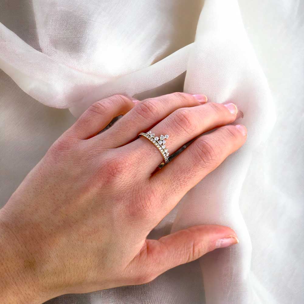 Possibilità di portare insieme i due anelli a coroncina (oro rosso e oro bianco)
