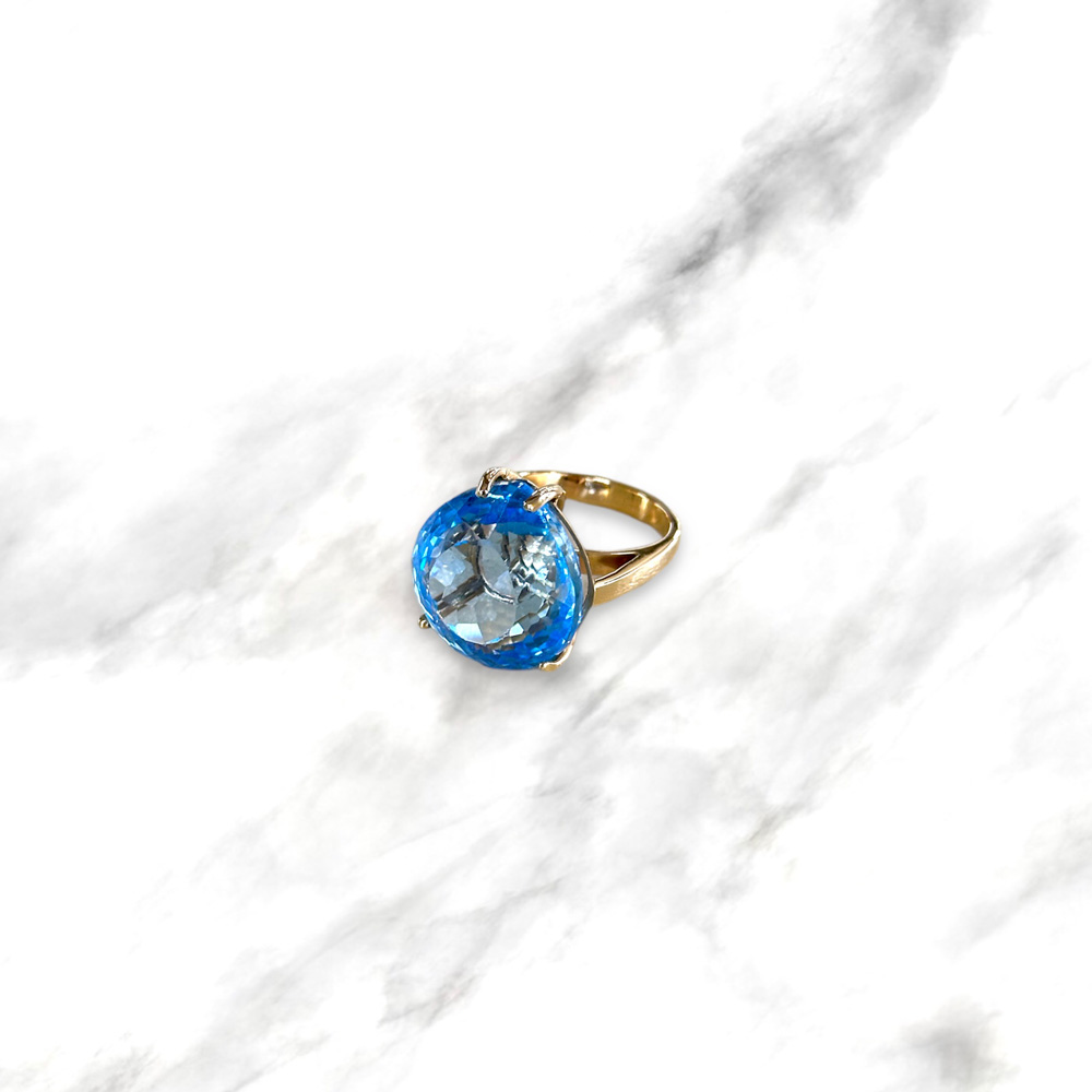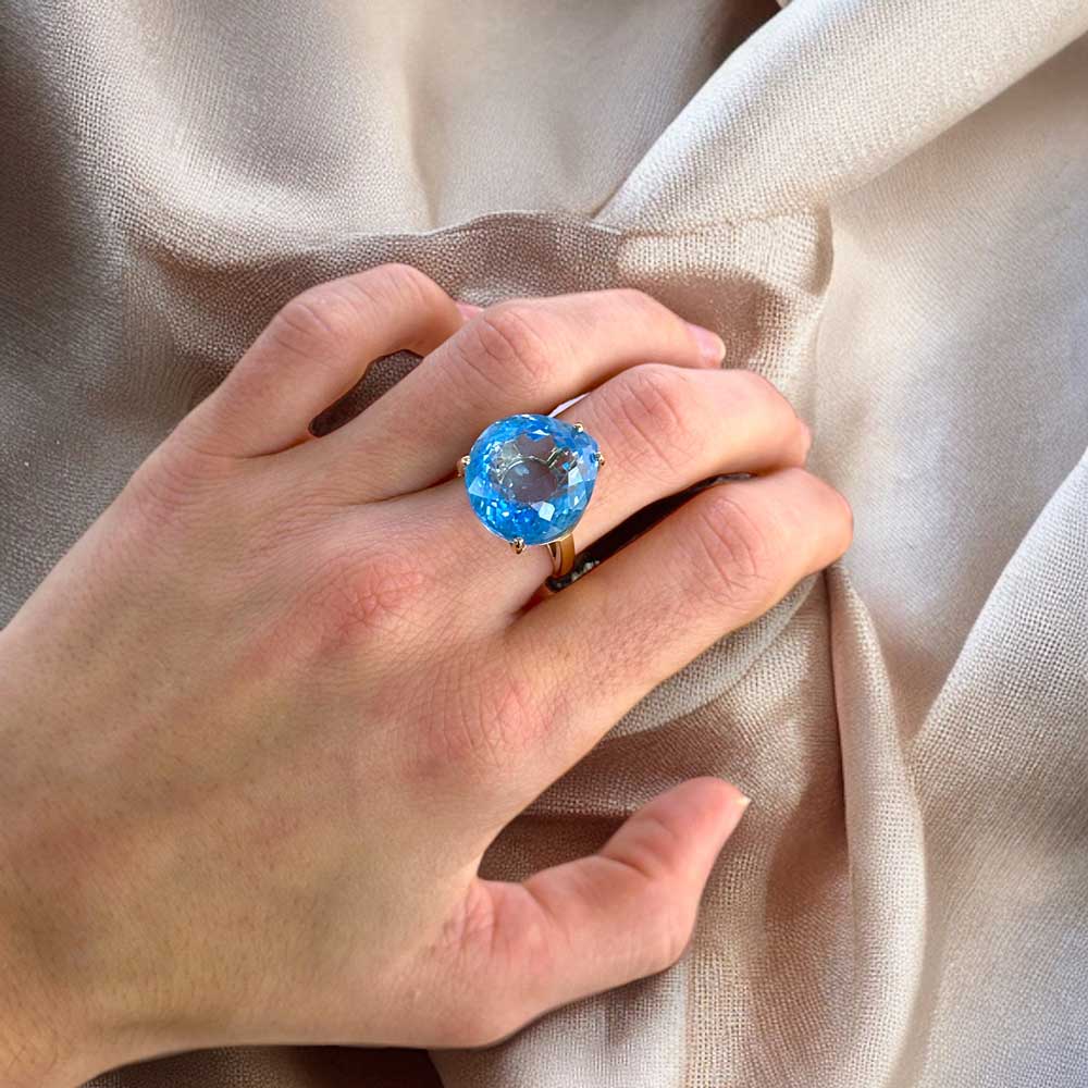 Solitario in oro rosso 18kt con topazio azzurro naturale