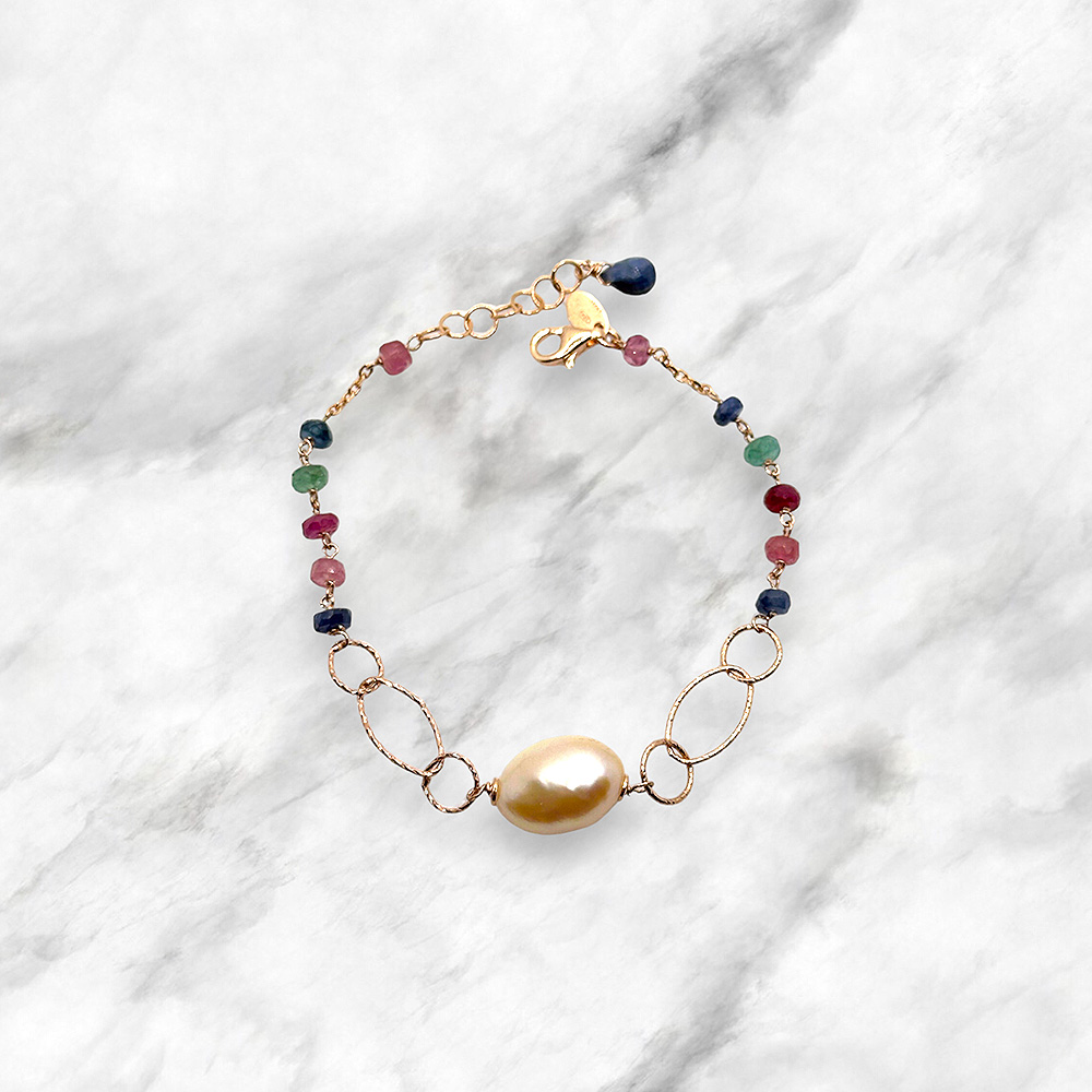 Bracciale made in Italy in argento rosa 925 con tormaline multicolor e perla barocca centrale naturali.