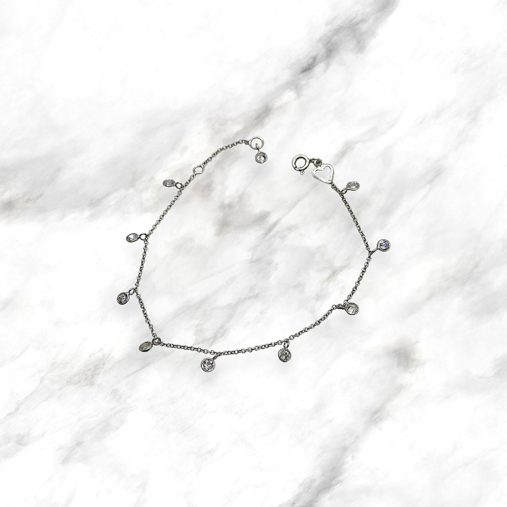 Bracciale made in Italy in oro bianco 18kt con cubic zirconia pendenti e cuore vicino alla chiusura.