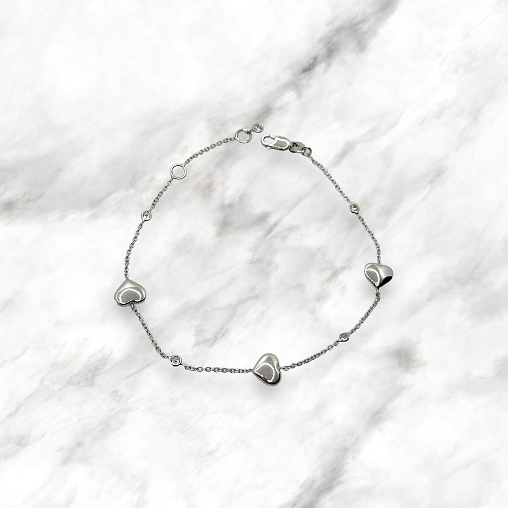 Bracciale made in Italy in oro bianco 18kt con cuori e cubic zirconia.