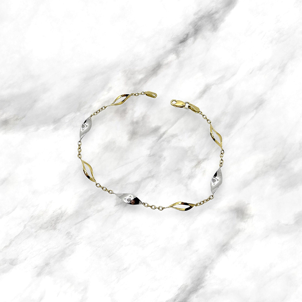 Bracciale realizzato in Italia in oro giallo e bianco 18kt con rombi traforati.