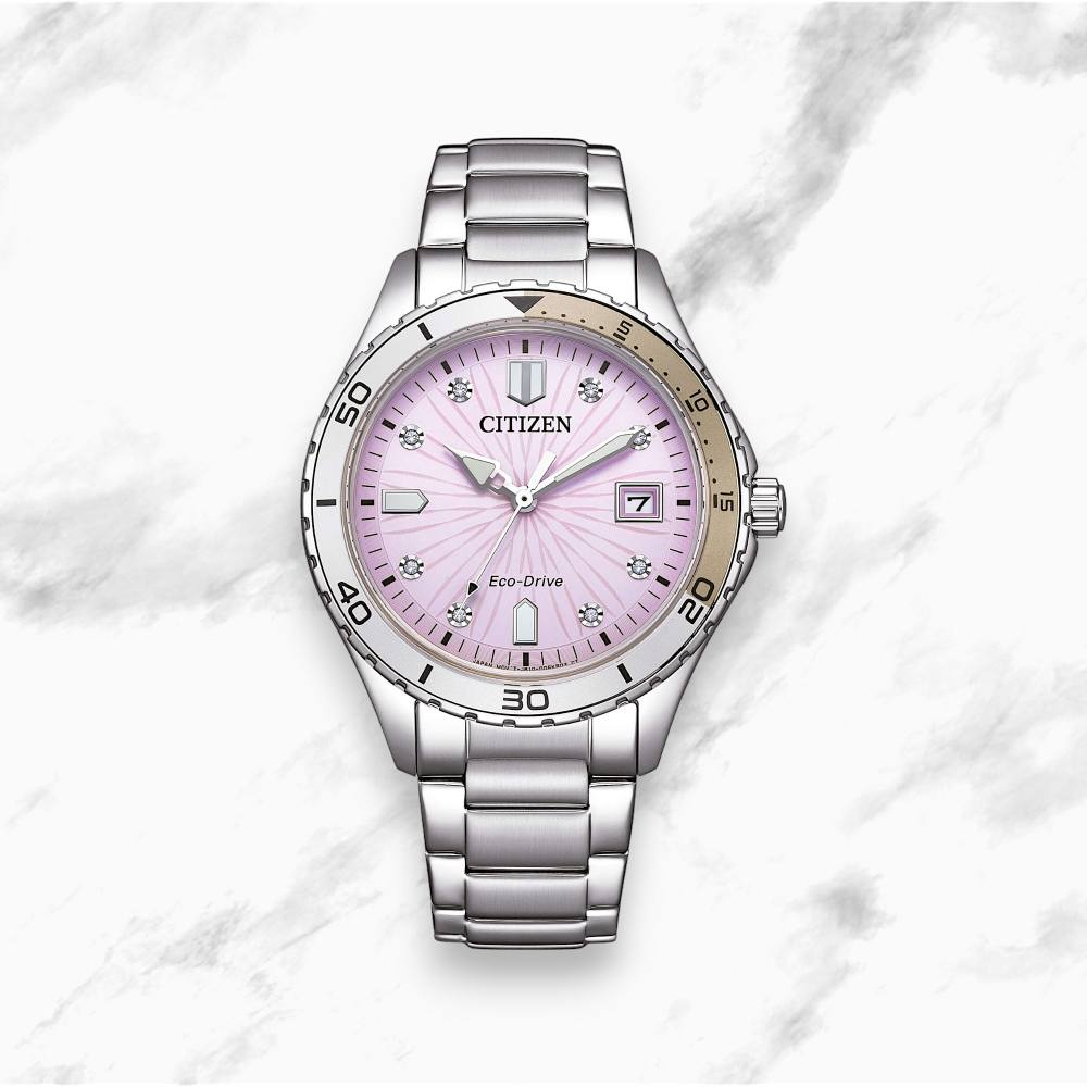 Movimento: Eco Drive Dimensioni della cassa: 37mm Colore quadrante: Rosa Materiale della cassa: Acciaio Vetro: Minerale Tipo di quadrante: Analogico Impermeabilità: 10 bar (100m)