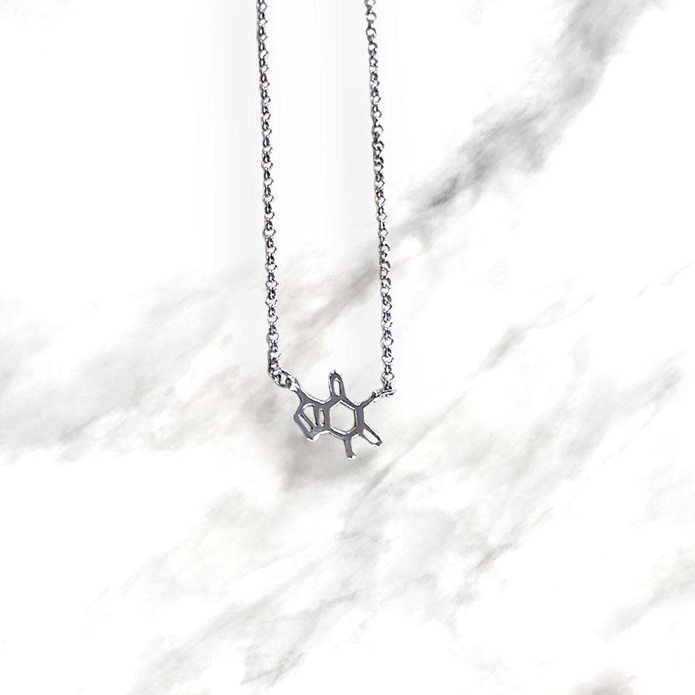 Collana in argento 925 realizzata dai nostri orafi con molecola della caffeina traforata