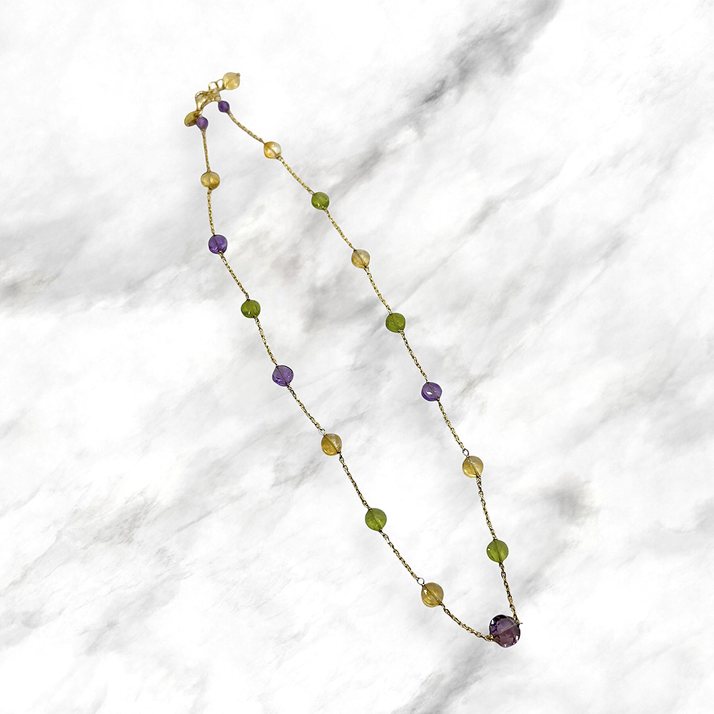Collana made in Italy in argento dorato 925 con ametista, topazio citrino e peridoto naturali.