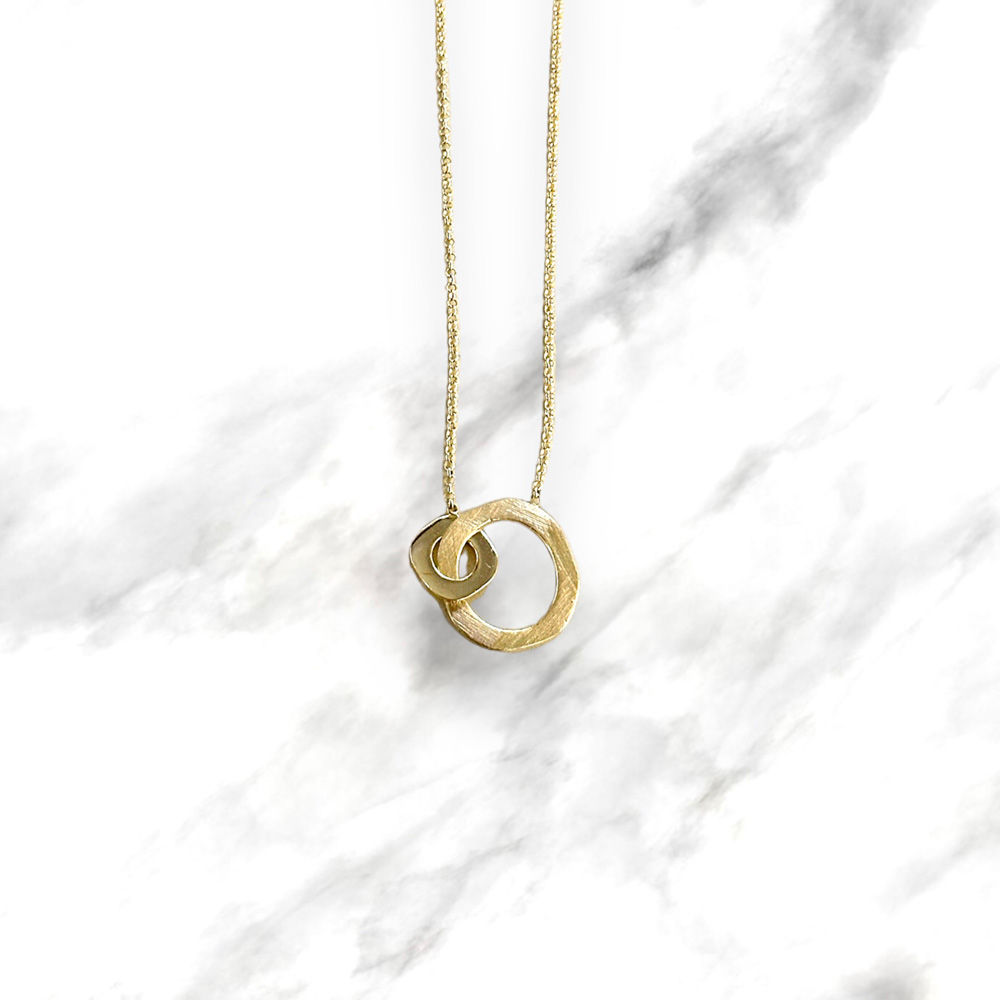 Collana argento dorato con ciondolo a cerchi incrociati