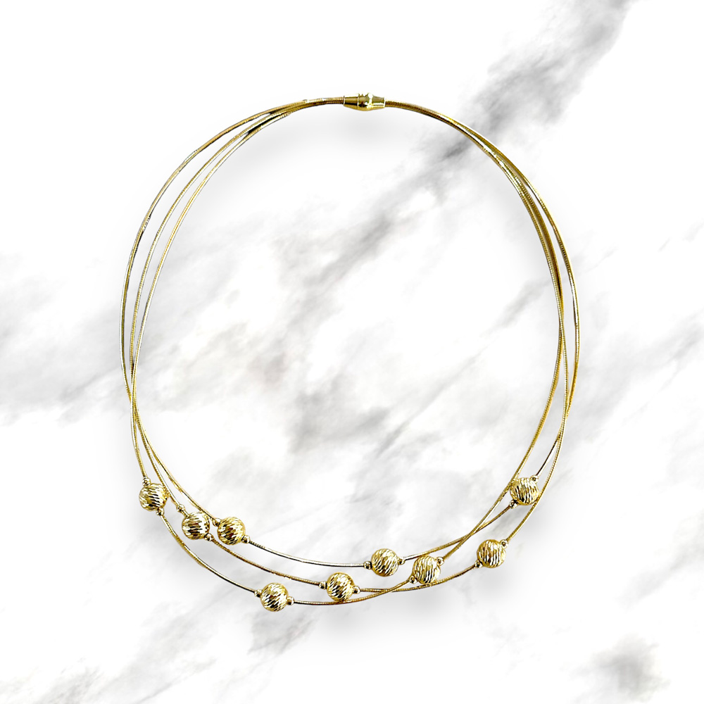 Collier semi rigido made in Italy in argento dorato 925 con boules diamantate e chiusura con calamita