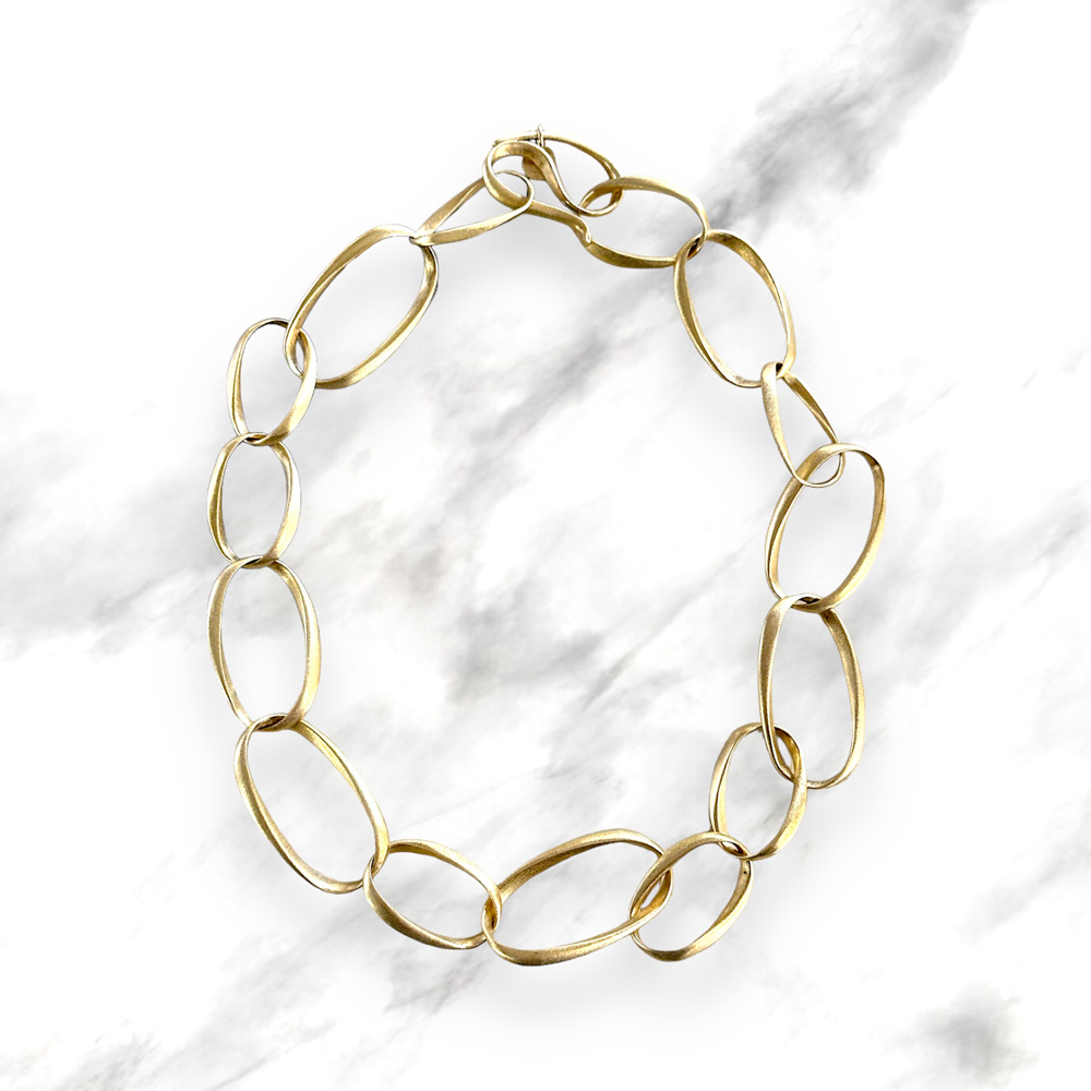 Collana semi rigida made in Italy in argento dorato 925 con anelli traforati effetto lucido/satinato