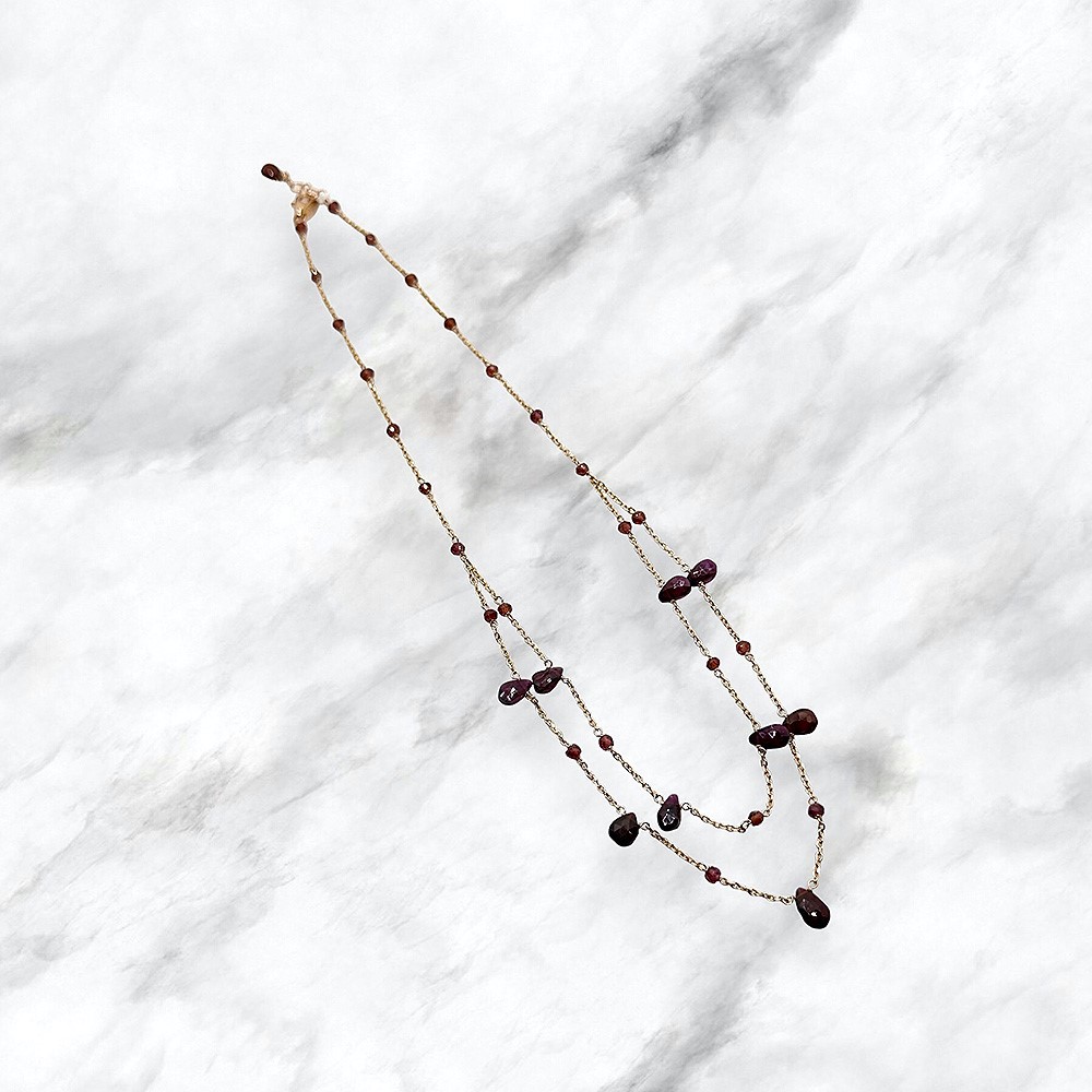 Collana doppio filo made in Italy in argento rosa 925 con gocce di granato naturali.