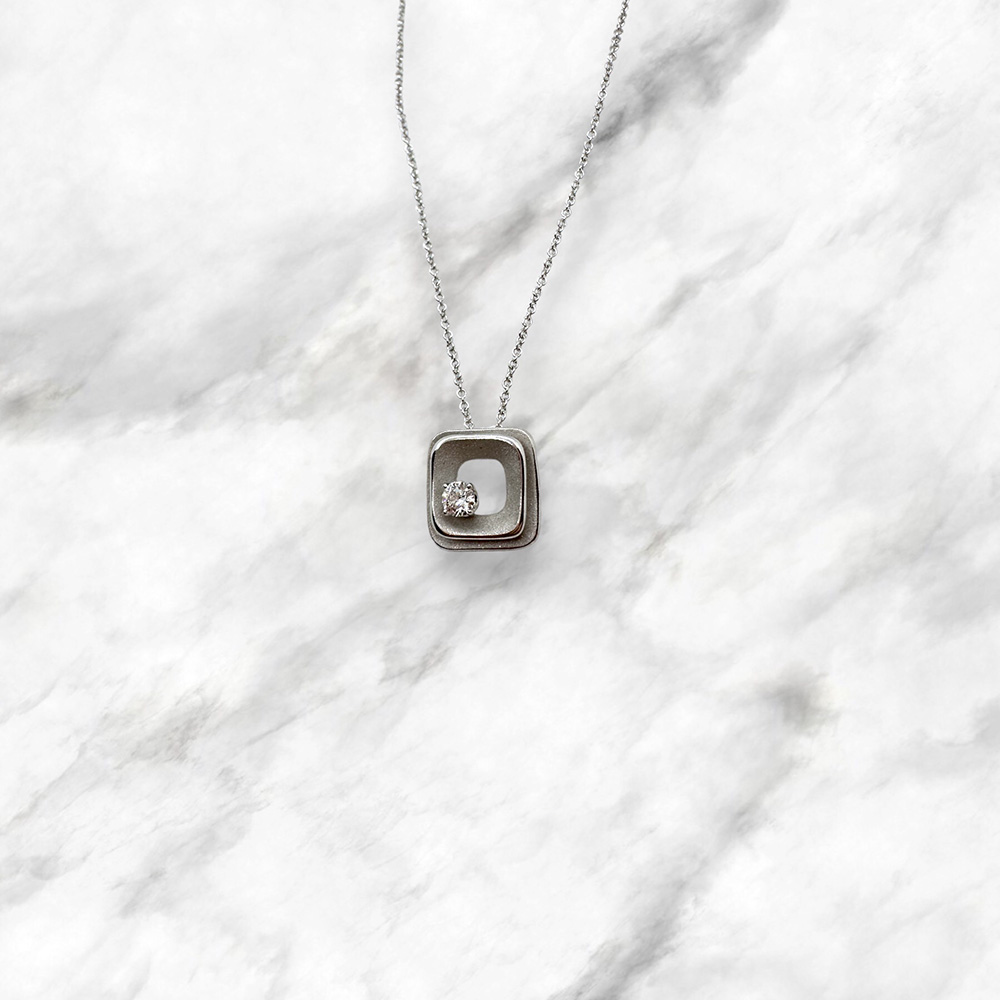 Collana Annamaria Cammilli made in Italy in oro bianco 18kt lucido e sabbiato con pendente quadrato e diamante naturale taglio brillante.