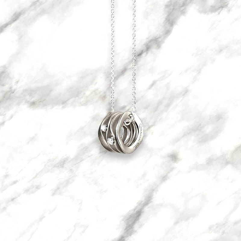 Collana Annamaria Cammilli made in Italy in oro bianco 18kt lucido e sabbiato, collezione ‘Dune’ con due diamanti naturali taglio brillante.