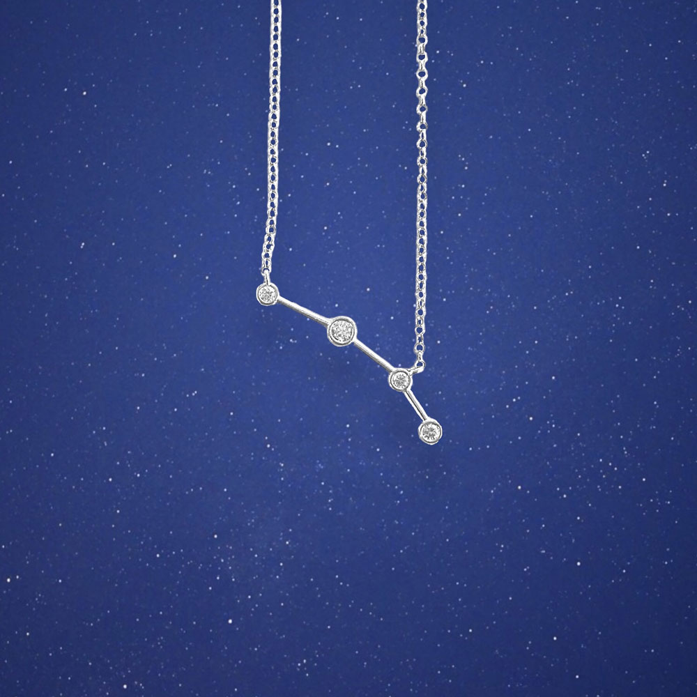 Collana in argento 925 con segno zodiacale dell’Ariete e cubic zirconia bianchi, realizzata a mano.