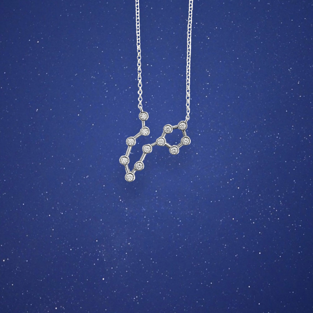 Collana in argento 925 con segno zodiacale dei Pesci e cubic zirconia bianchi, realizzata a mano.