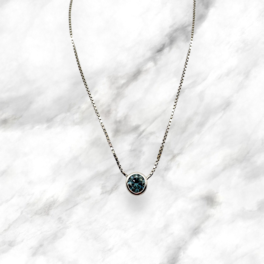 Collana made in Italy in oro bianco 18kt e punto luce con diamante blu naturale.