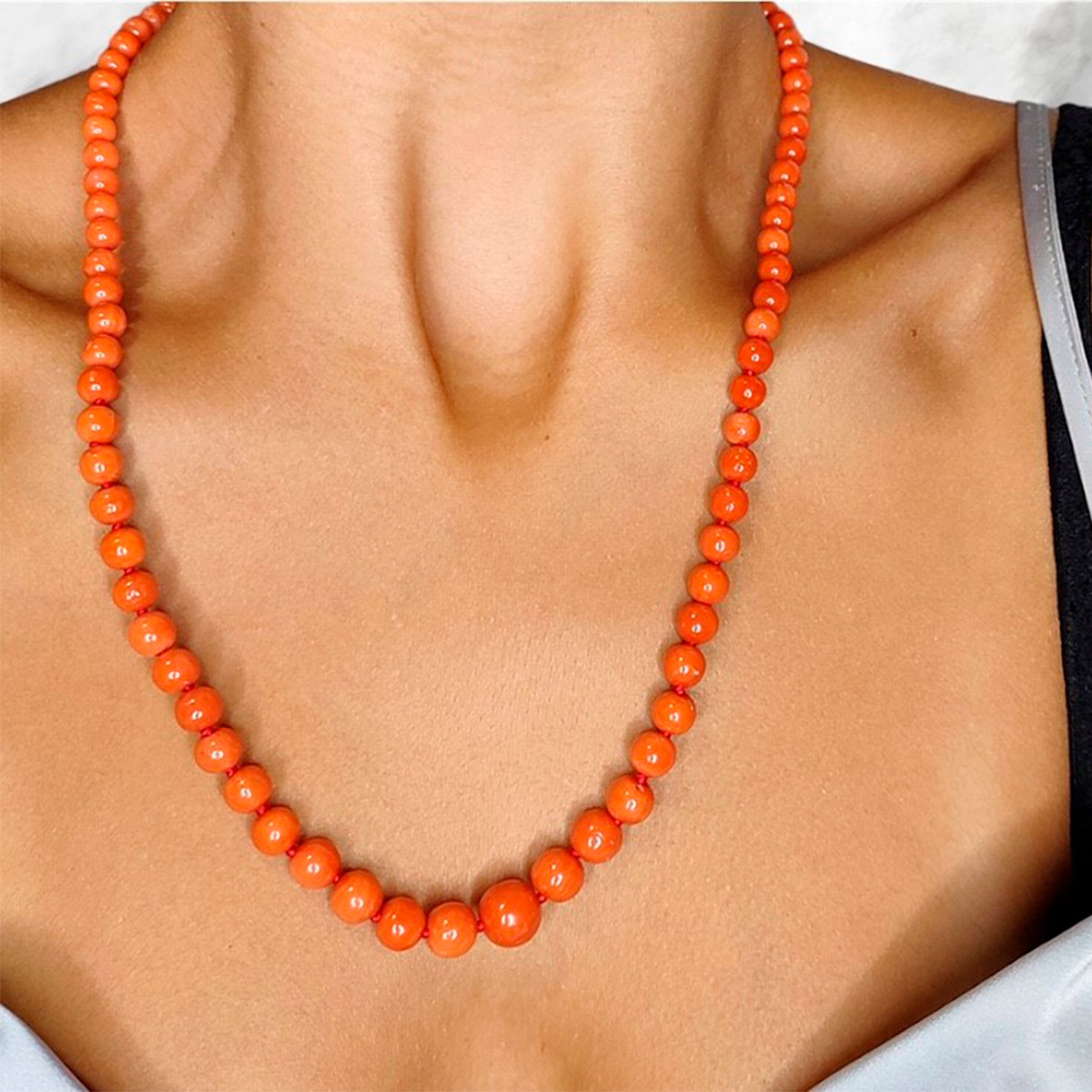 Collana in oro giallo 18kt con boules di corallo sardo