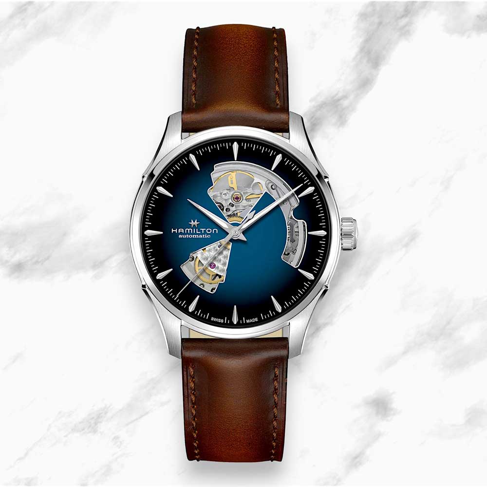 Orologio automatico con quadrante blu scheletrato e doppio vetro zaffiro (quadrante e fondello)