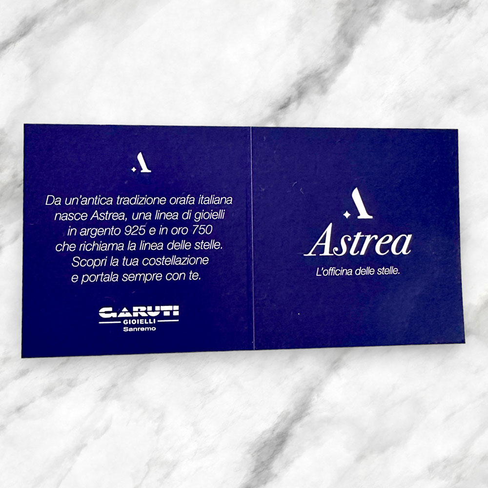 – Packaging ‘Astrea’ munito di garanzia e istruzioni su come utilizzare un gioiello in argento 925