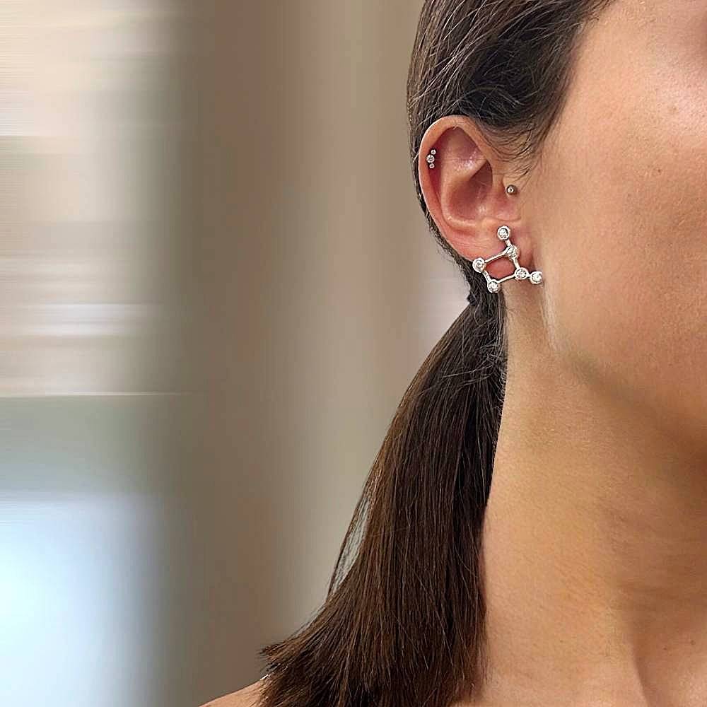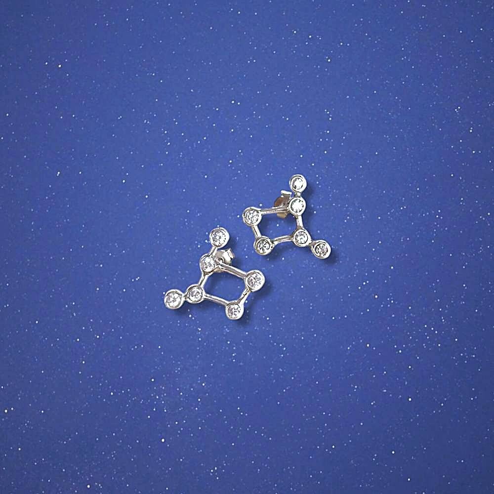 Orecchini in argento 925 con segno zodiacale dei Gemelli e cubic zirconia bianchi, realizzati a mano.