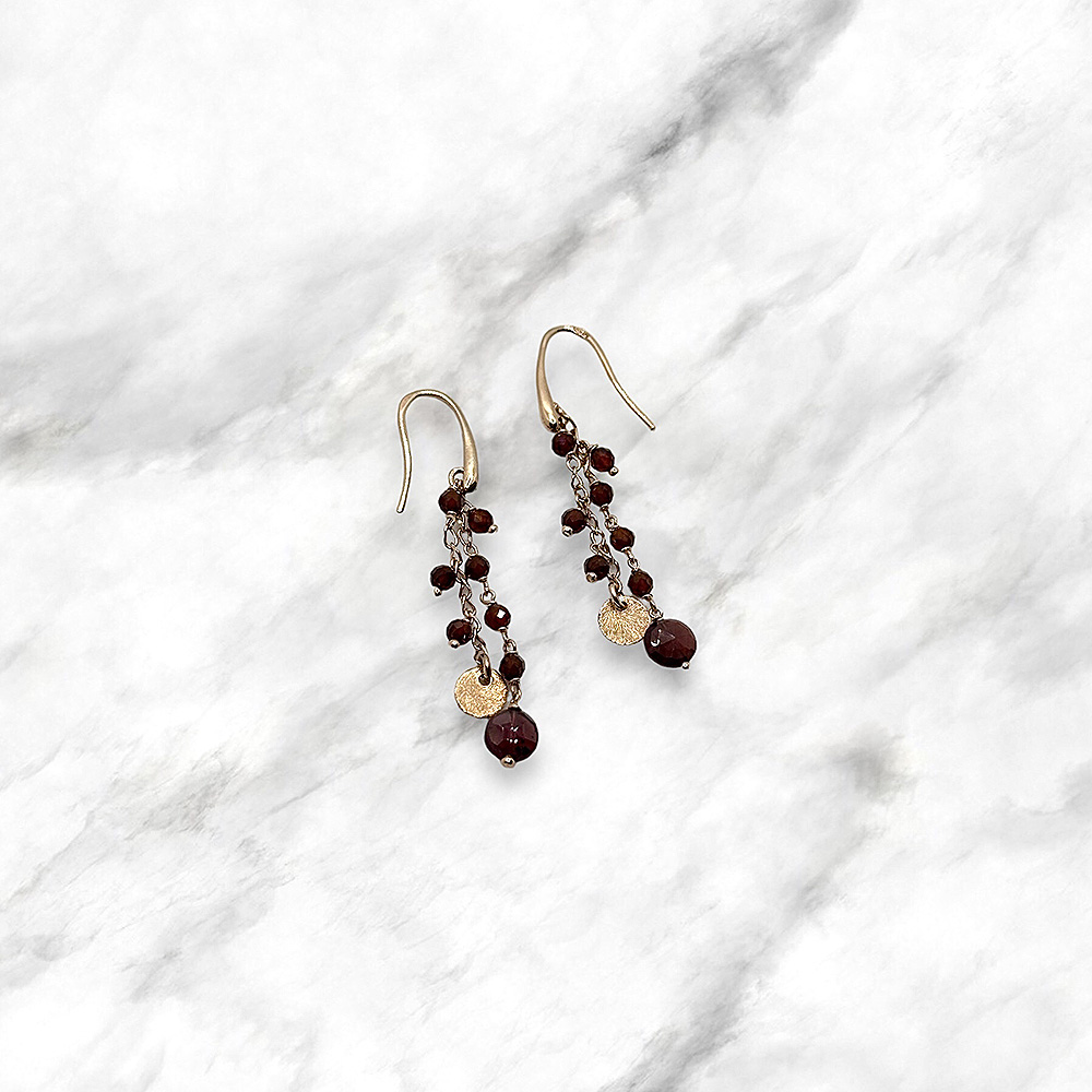 Orecchini doppio filo made in Italy in argento rosa 925 con granati naturali.