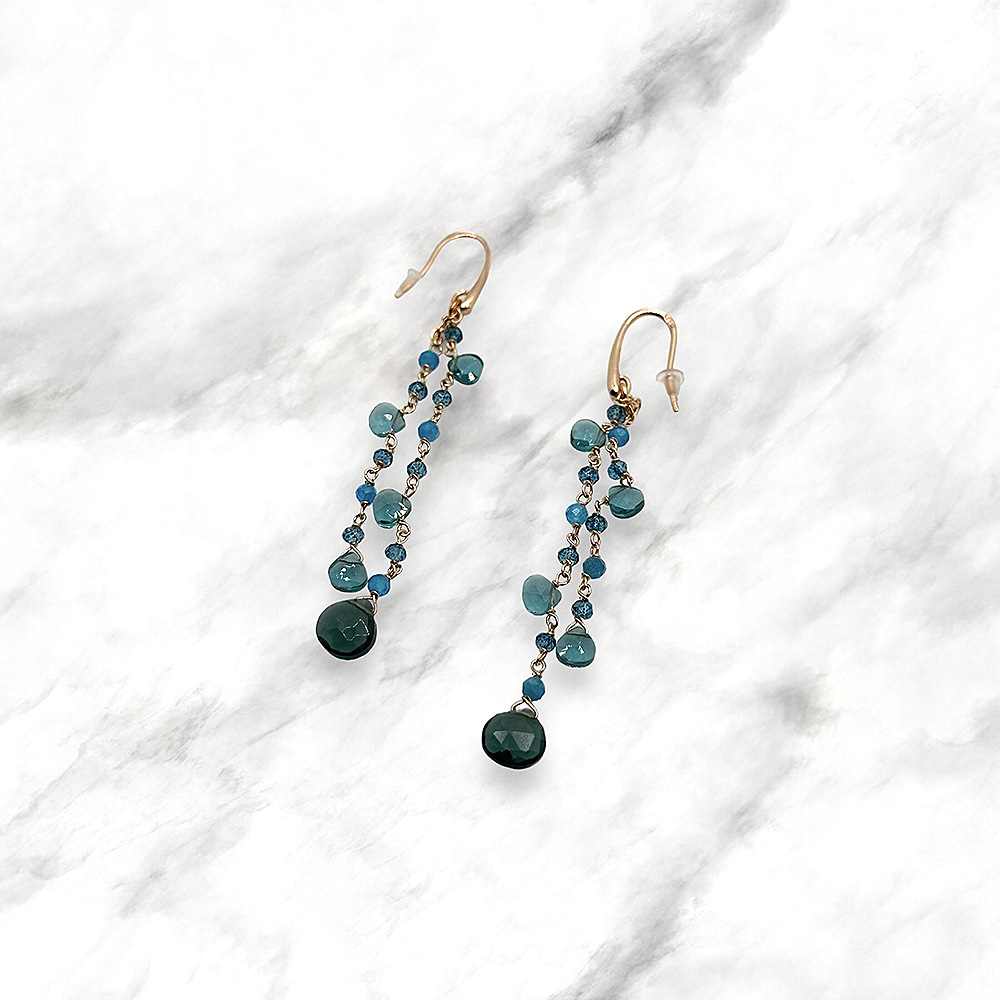 Orecchini a doppio filo made in Italy in argento rosa 925 con topazio london naturale.