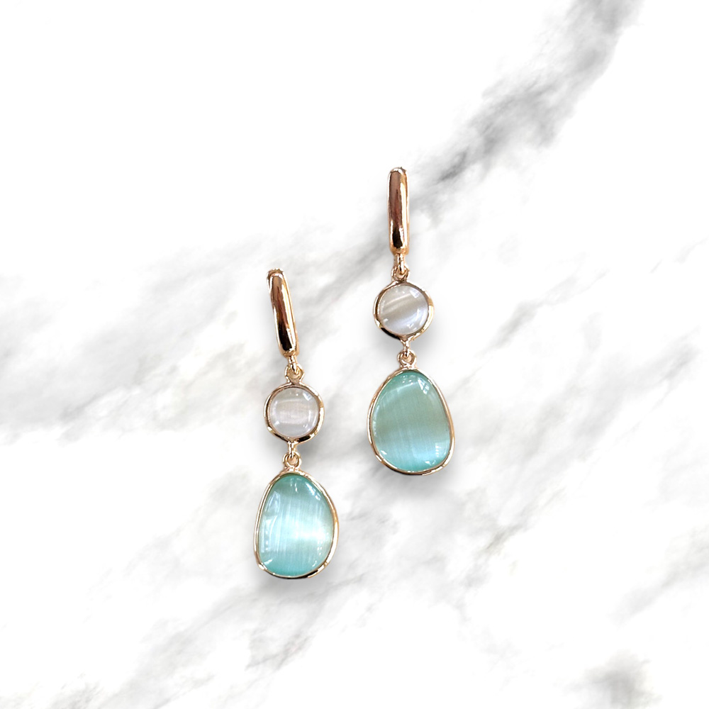 Orecchini pendenti in argento rosa 925 con quarzi turchese e bianchi