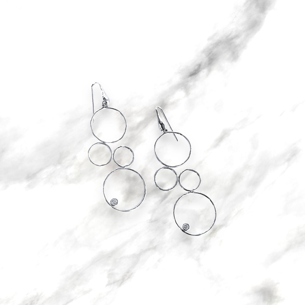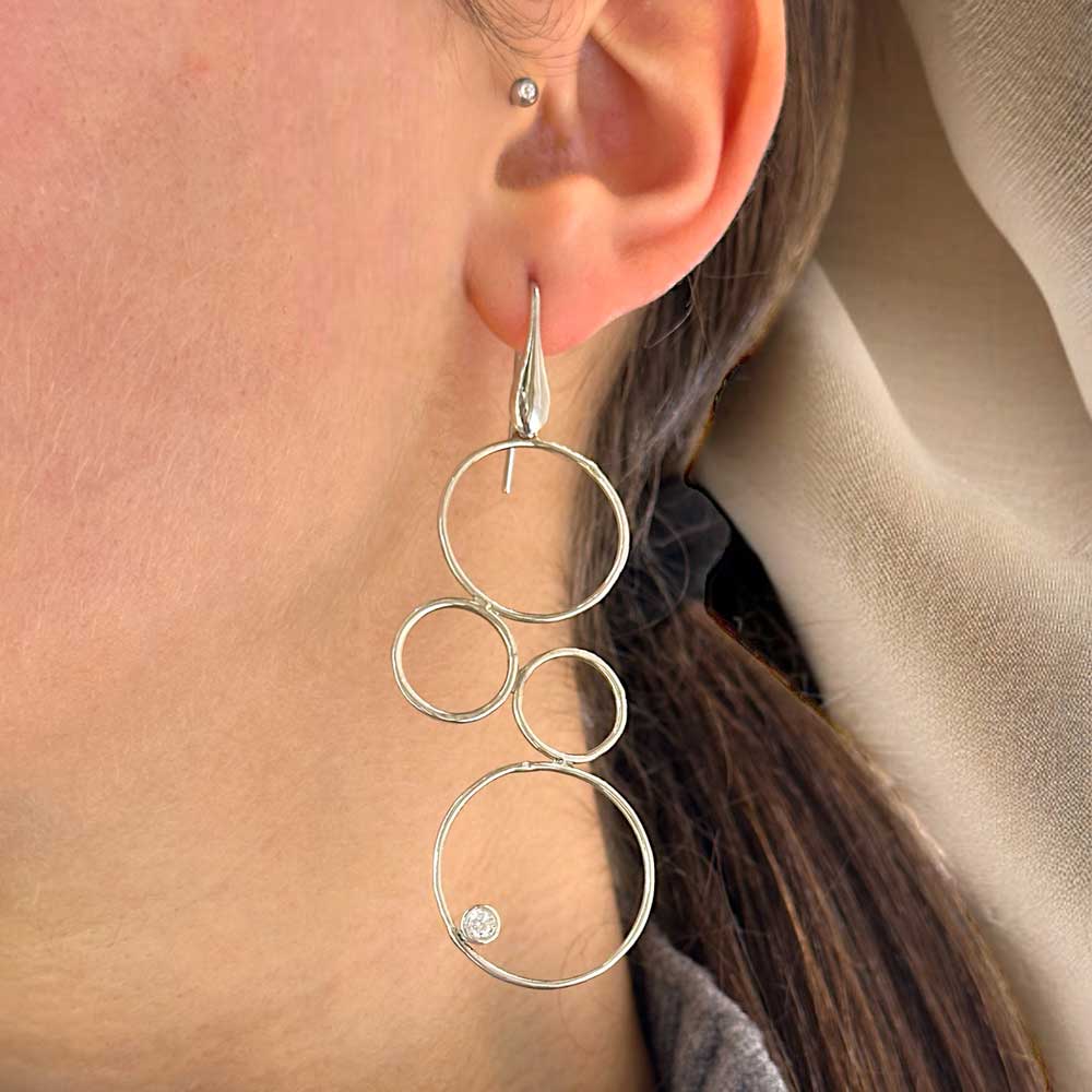 Orecchini pendenti realizzati dai nostri orafi in argento 925 con tondi e cubic zirconia