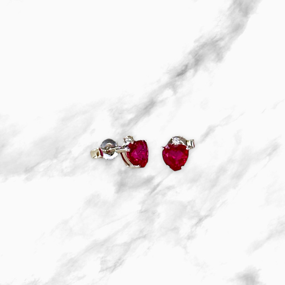 Orecchini a lobo realizzati in Italia in oro bianco 18kt con rubini taglio cuore e diamanti naturali