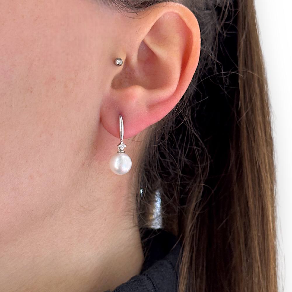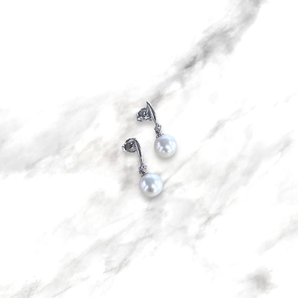 Orecchini in oro bianco 18kt con cubic zirconia e perla naturale coltivata