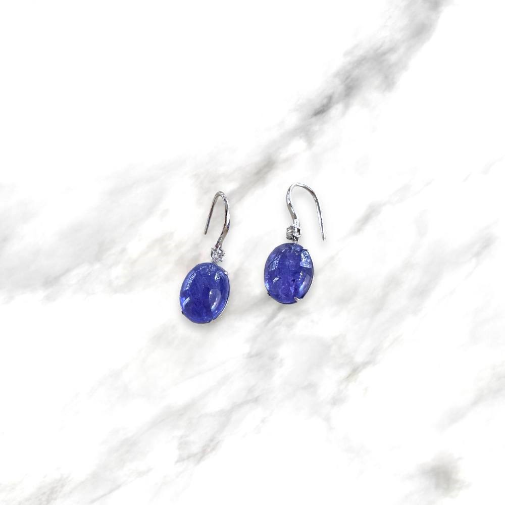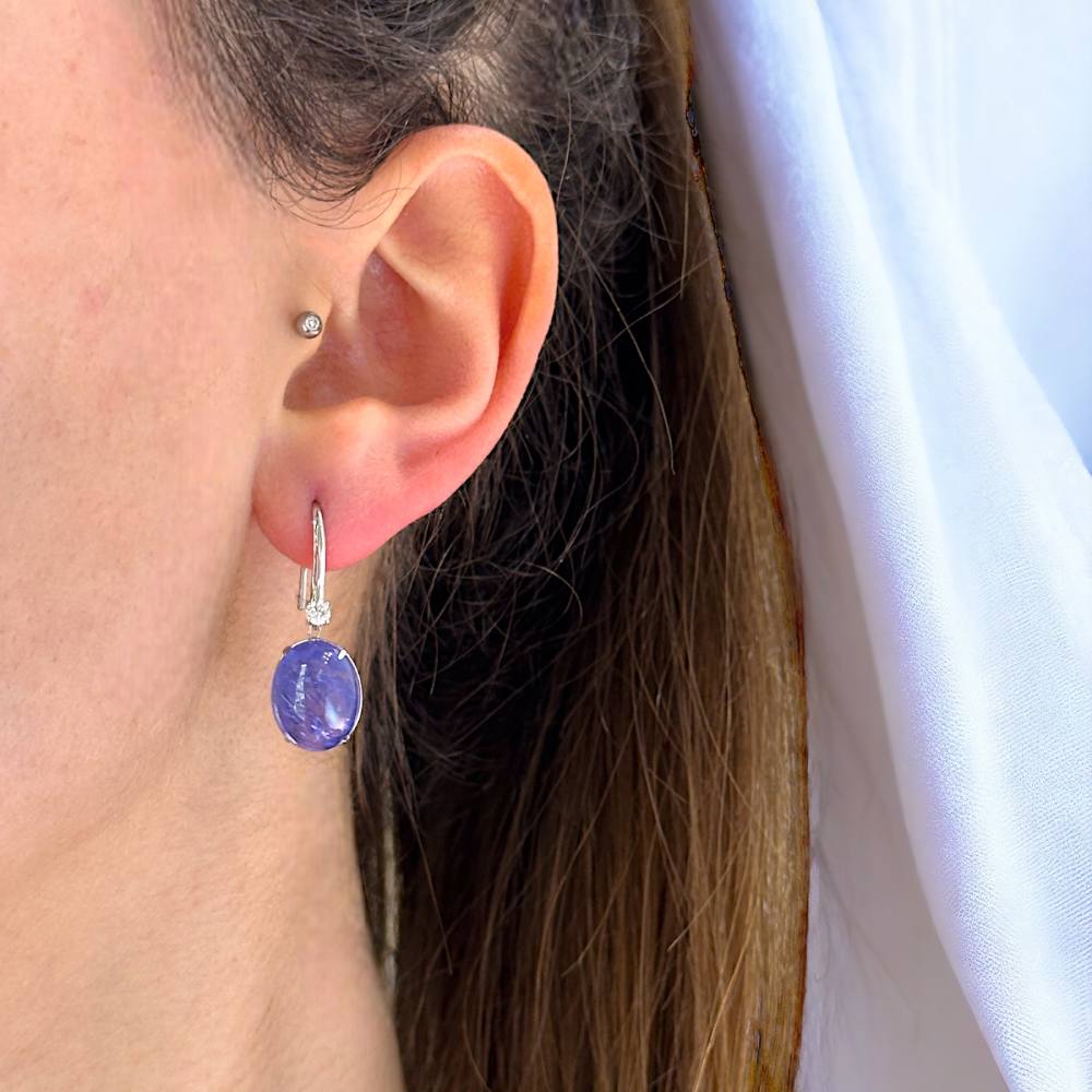 Orecchini pendenti realizzati in Italia in oro bianco 18kt con tanzanite naturale ovale e diamanti naturali taglio brillante