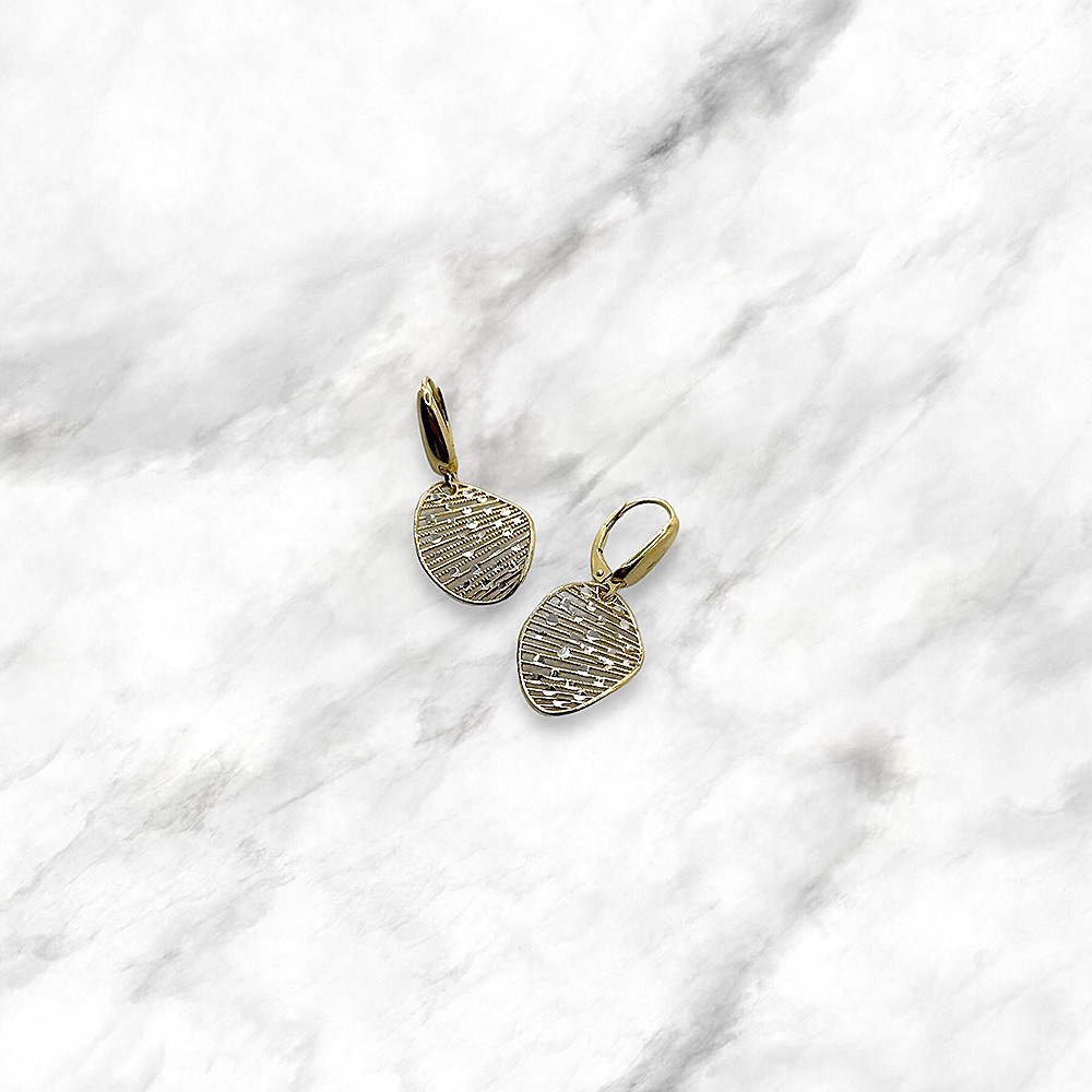 Orecchini made in Italy in oro bianco e giallo 18kt con pendenti traforati e diamantati.