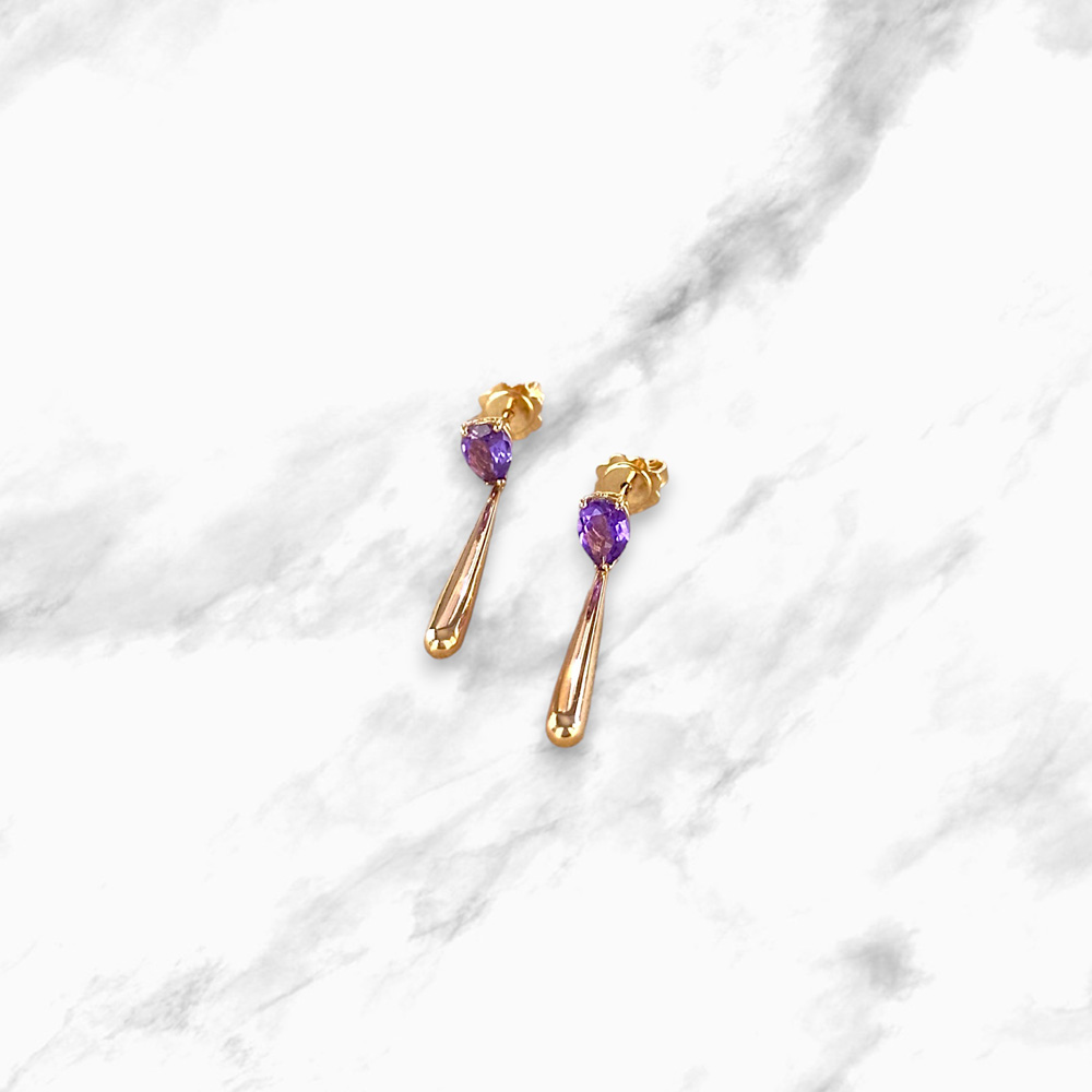 Orecchini pendenti realizzati in Italia in oro rosso 18kt con ametista naturale taglio goccia