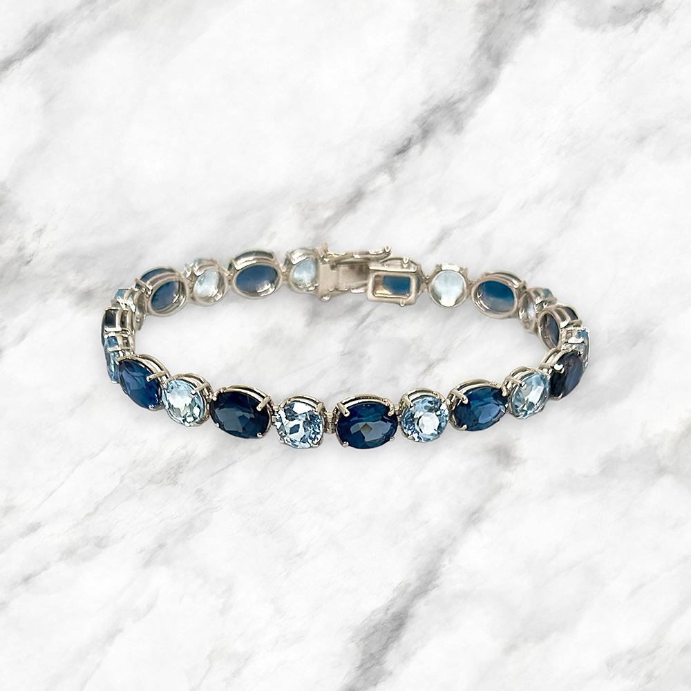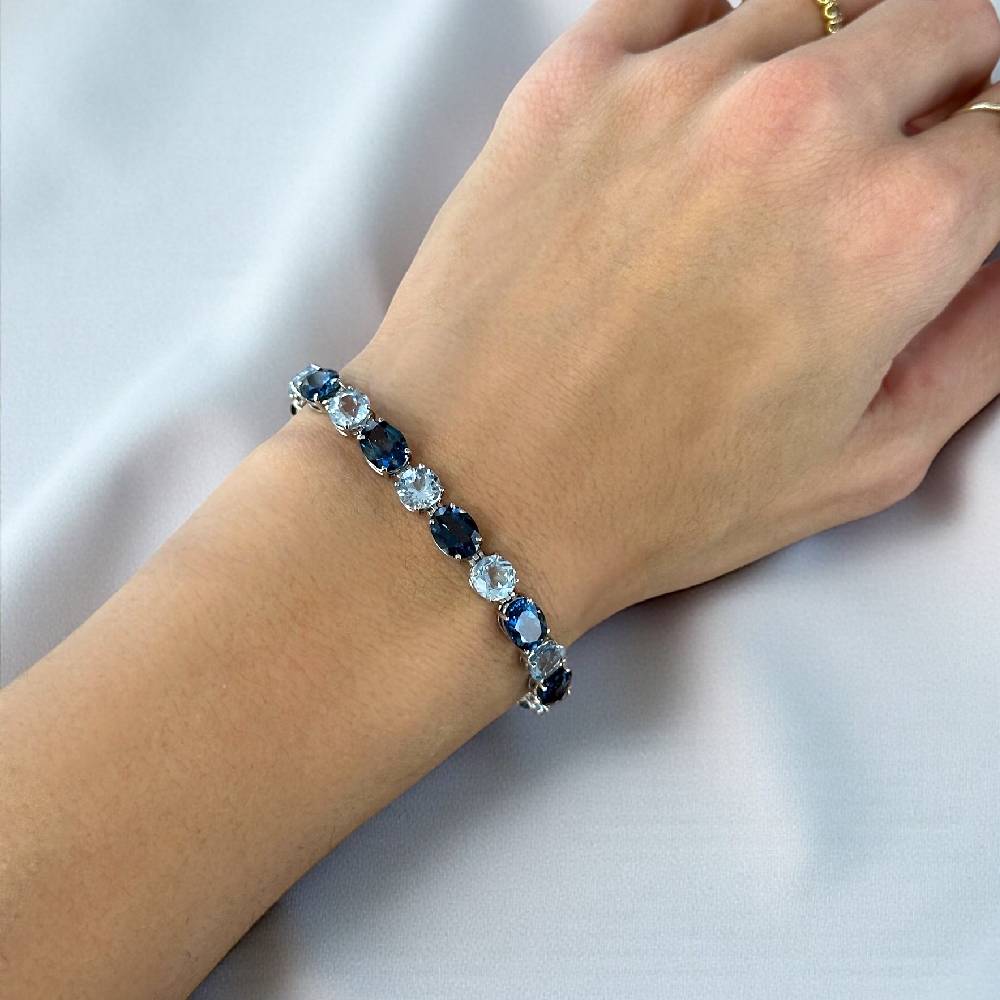 Bracciale made in Italy in oro bianco 18kt con topazi azzurri e London naturali.